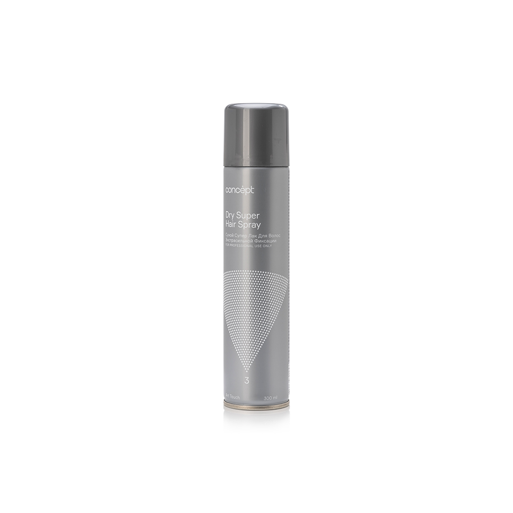Лаборатория бренда Concept подготовила особенный продукт для салонного и домашнего применения. Сухой лак для финишного этапа формирования прически позволяет зафиксировать результат работы мастера максимально аккуратно и на долгий срок. Dry Super Hair Spray без фреона. Использование инновационного фиксатора, которое легко вычесывается, позволяет изменять форму укладки без необходимости в мытье головы.